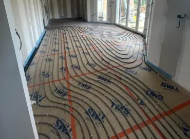 Suite à l’étude du plan de votre maison avec le fournisseur et à l’acceptation du devis, mise en place du plan de calpinage du réseau de plancher chauffant.